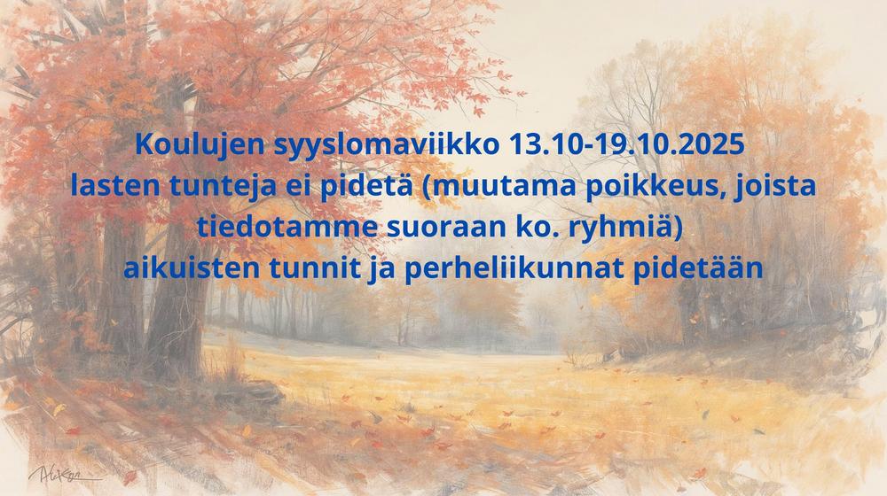 Ensi viikolla Espoossa vietetään koululaisten syyslomaa. Seuramme tunteissa poikkeuksia ko. viikolle eli 13.10. - 19.10.2025. Lasten ja nuorten tunteja EI pidetä ko. viikolla. Poikkeuksena tunnit,…