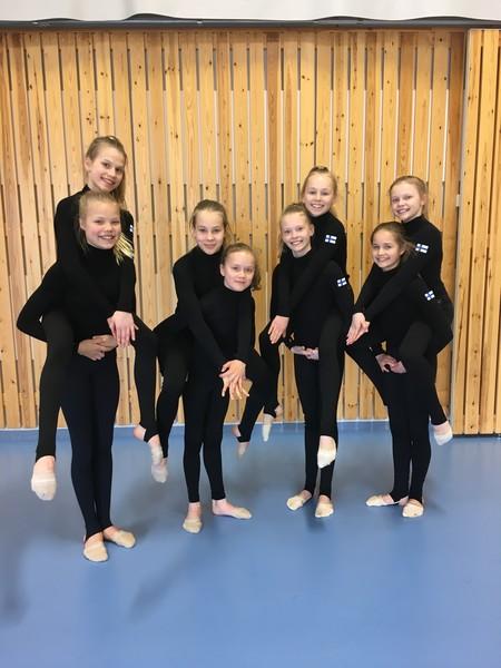 Osa Team Hallan tytöistä kilpaili rytmisen voimisten luokannousukilpailuissa Jyväskylässä.