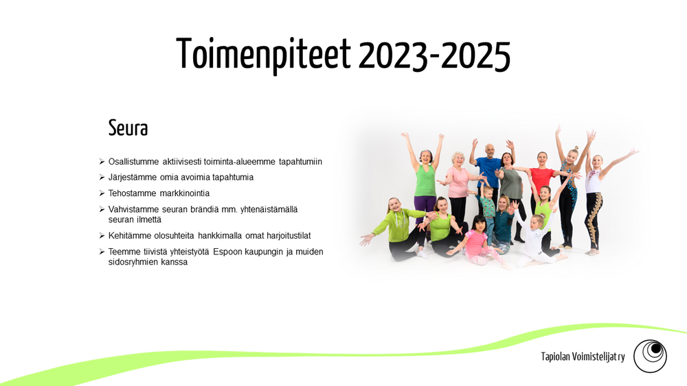 Harrasteliikunnan ja kilpatoiminnan visioiden toteuttamiseksi laadittiin syksyllä 2022 seuran strategia vuoteen 2025. Lataa pdf tutustuaksesi tarkemmin startegiaan tai klikkaa alla olevia kuvia suuremmiksi.