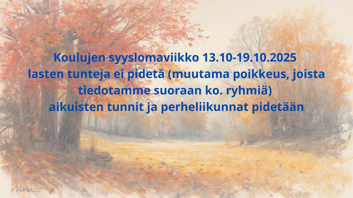 Perheliikunnan ja perhetanssit tunnit pidetään normaalisti myös syysloman aikana.